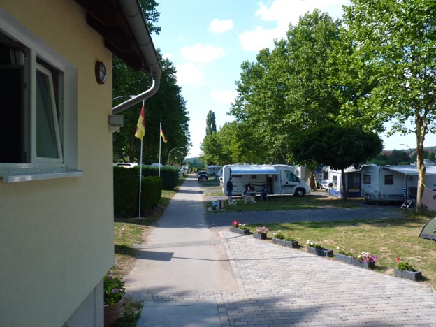 Vi hamnade på Campingplatz Hameln, som finns i en stor tjock campingbok på tyska som jag har hittat någonstans. ECC Campingführer heter boken.