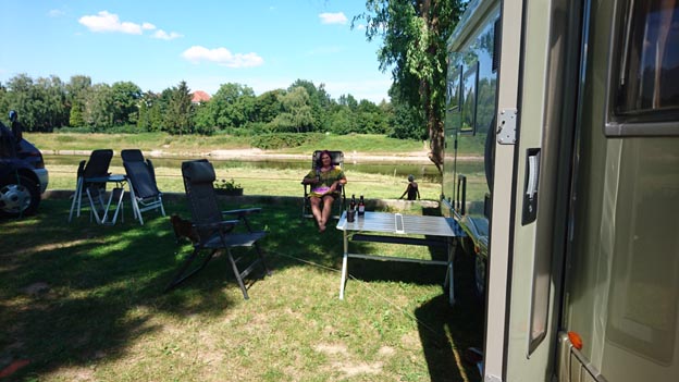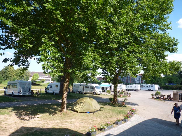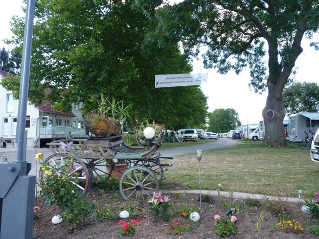 I Hameln finns flera ställplatser, men vi valde camping istället. Mycket för att vi ville att katten skulle få en bra plats på gräs och med lite yta att röra sig på. Gärna med skugga också.