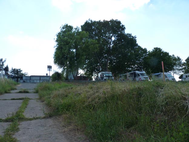 Precis bredvid campingen fanns en ställplats. Den var som en vanlig parkering, och man betalade i automat. Vi hade gräs och yta, ställplatsen hade grus och var trång. Eftersom det var så varmt behövde vi skuggan som vi hade på bilen, för att kunna lämna katten och gå till stan.