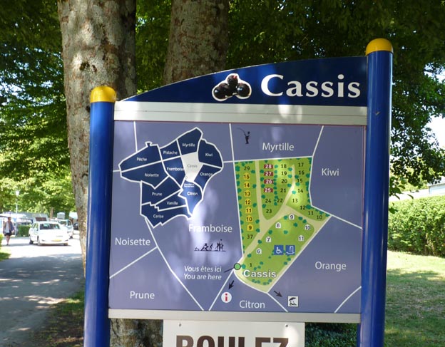 Det var många som jobbade i receptionen, och de hade skyltar på sig som talade om vilka språk de talade. Vi valde en ung, trevlig tjej med engelsk skylt. Vi fick se en karta över campingen, och blev tilldelade en plats som var enkel att köra till, eftersom vi hade 9 meter bil. Platsen var stor, sa hon, och det fanns gott om utrymme att svänga och trixa där. Det visade sig stämma väldigt bra. Trots att campingen var så stor hade hon full koll på hur platserna såg ut, och hur tillgängliga de var.