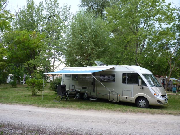 Framme vid Camping La Célestine, som finns i ACSI. Detta är en liten och enkel camping. Vill du ha lyx, ska du åka någon annan stans. För oss är den här campingen perfekt. Det enda som saknas är en liten mysig by med restaurang och uteservering i närheten.