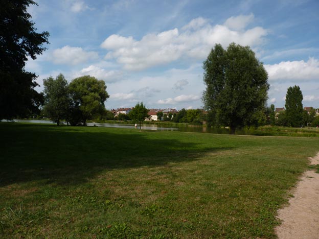 Vi tog gångvägen från campingen in till den lilla byn. Det bor ca 2000 personer i Pont-de-Vaux. Det tar ca 10 minuter att gå från campingen, och man går längs med en liten sjö.