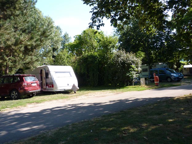 På campingen fanns det en avdelning speciellt för husbilar (den på första bilden där vi inte fick plats), planen där vi hamnade, och en större del av campingen, som såg ut som på bilden ovanför. Där var platserna avgränsade av häckar eller träd.