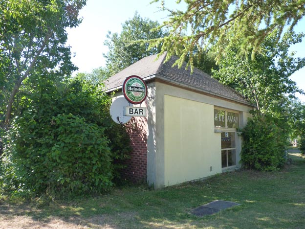 Bredvid servicehuset hittade vi den här skylten. Jag gillar barer, jag gillar Heineken, så vi gick så klart dit.