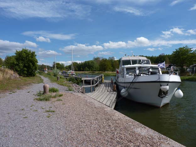 Eftersom det var fredag, och sommar, så tänkte vi att en ställplats vid Göta Kanal kan bli full tidigt. Vi kom dit väldigt tidigt, strax efter kl 12.00, och då såg det ut så här. Kl 20.00 på kvällen fanns det fortfarande platser kvar. Inte lika många, men ändå. Bra att veta.