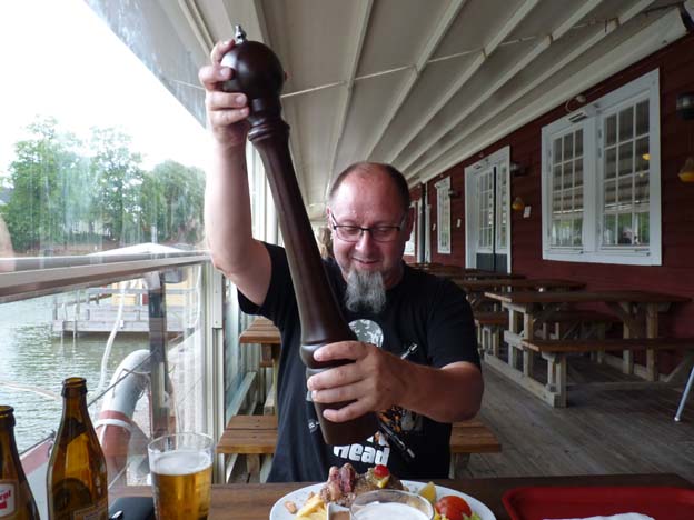 Om man vill ha mer peppar på sin pepparbiff kan man låna pepparkvarnen från köket. Det är ingen risk att den kommer bort.