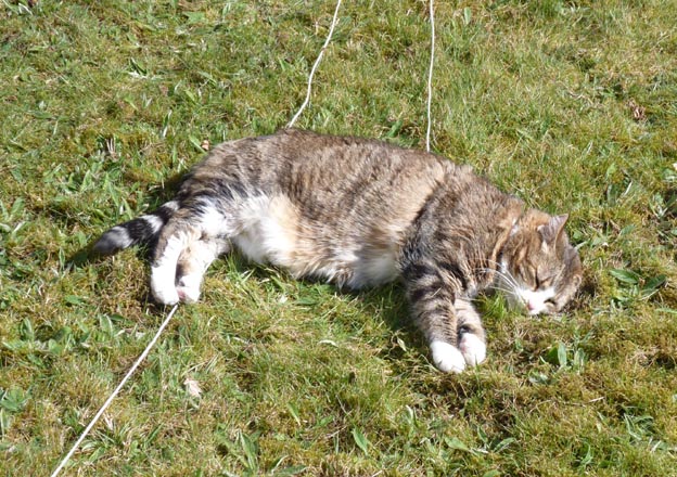 Det var över 20 grader varmt ute, och strålande sol. Olivia låg i gräset och nöjt av vårsolen.