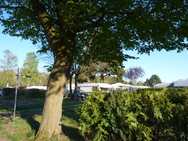 Det är grönt och lummigt. Det är träd och häckar i mängder på den här campingen.