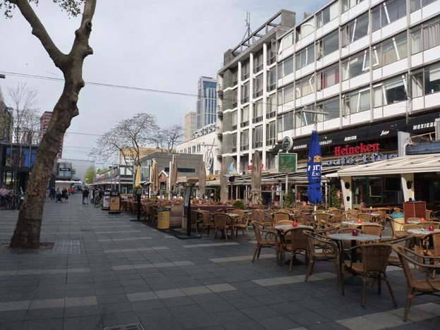 Det här var en trevlig gata. Det var faktiskt den trevligaste gatan vi hittade i Rotterdam. De andra gatorna såg ut som i vilken storstad som helst. Det fanns shoppingcentrum och affärer, och en hel del kontorsbyggnader. Vi gillar inte att gå i affärer, och det fanns väldigt många sådana, så vi upplevde Rotterdam som en ganska tråkig stad.