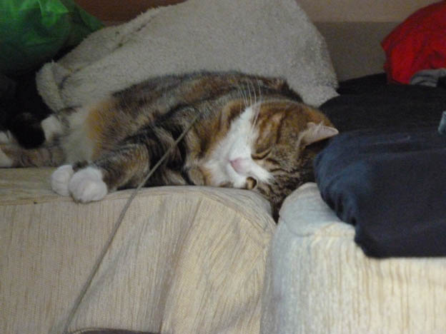 På kvällen började Olivia känna sig lite mer hemma i nya bilen, hon kunde till och med snarka en liten stund.