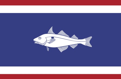 Stadens (eller kommunens) flagga har givetvis en bild på en fisk.