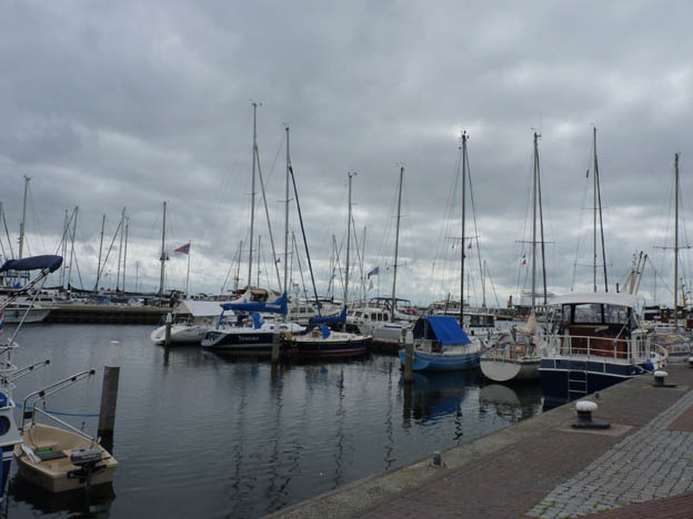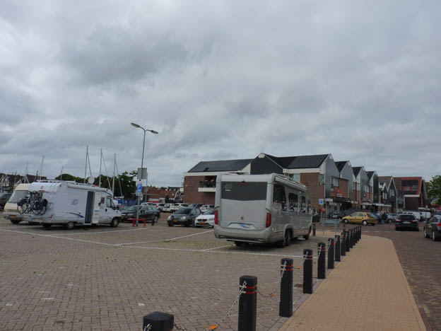 Idag fick vädret avgöra. Det såg ut att regna mindre västerut, så vi åkte till Holland. Eftersom jag hade glömt allt som liknar sandaler hemma valde vi staden Urk. Där finns en ställplats nära affärer, tänkte vi. Och så gillar vi hamnar.
