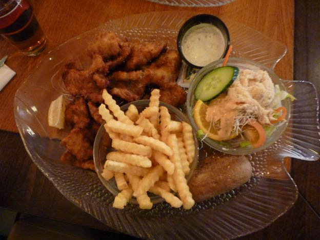 Jag åt Kibbling. Jag vet inte riktigt vad det är, men det var några friterade små fiskbitar med vit fisk. Lelle åt någon rosa fisk, som inte var lax. Det var gott i alla fall.