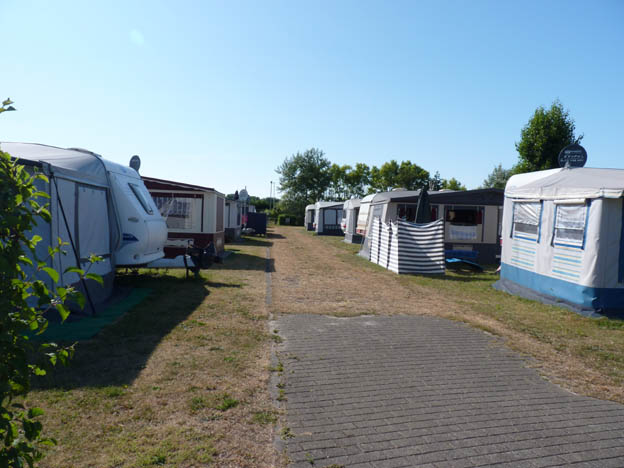 Den här campingen hade flera säsongsplatser och flera som bokade flera veckor på sommaren, men det fanns ändå många platser kvar för resande i husbilar. Vi sparar den i ”bra att veta-listan” utifall vi har vägarna förbi någon mer gång.