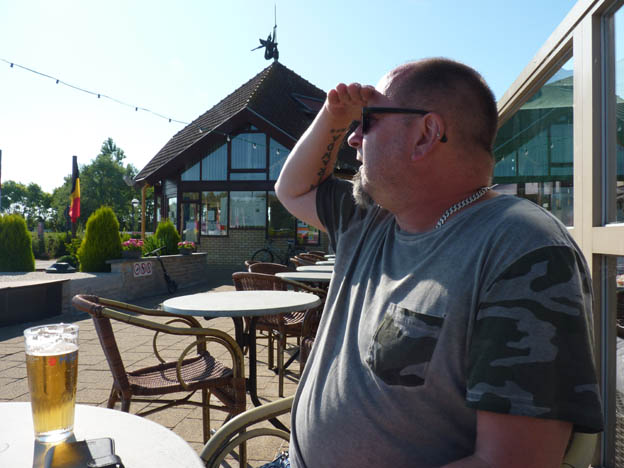 Vi fick för oss att vi skulle sova en natt vid Belgiska kusten. Jag vet inte varför, vi har provat det förut och det har inte funkat, och det blev inte så bra den här gången heller. Fullt, fullt och fullt. På massor av campingar. På en av campingarna vi provade fanns det plats, men bara för husbilar kortare än 8 meter. Vi fick backa därifrån på en smal väg, samma storlek som en cykelbana ungefär, och sedan svänga 90 grader ut på en större väg med mycket trafik i en korsning där höga buskar skymde all trafik. Jag fick helt enkelt hoppa ur bilen och ställa mig mitt i vägen och stoppa all trafik medan Lelle backade ut. Som tur var fick jag hjälp av några cyklister som stoppade trafiken åt andra hållet.