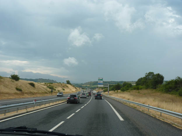 Mot Medelhavet och Saintes Maries de la Mer. I höjd med Millau valde vi betalväg för att undvika branta småvägar ner mot havet. Det blev dyrt. 29 € för en sträcka på ca 10 mil.
