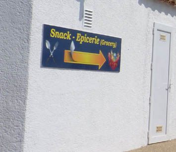 Campingen hade en restaurang/bar på stranden. Runt den var det mycket folk.