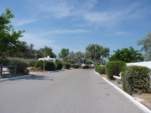 I Saintes Maries de la Mer finns flera campingar och ställplatser. Vi valde att sikta på en camping, mest på grund av katten. Det var väldigt varmt, och vi ville vara säkra på att få el till ac:n för hennes skull. Dessutom ville vi ha lite utrymme utanför bilen så att katten skulle kunna gå ut om hon ville.