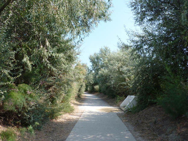 Ungefär mitt på campingen hittade vi stigen som ledde till campingens privata del av stranden.