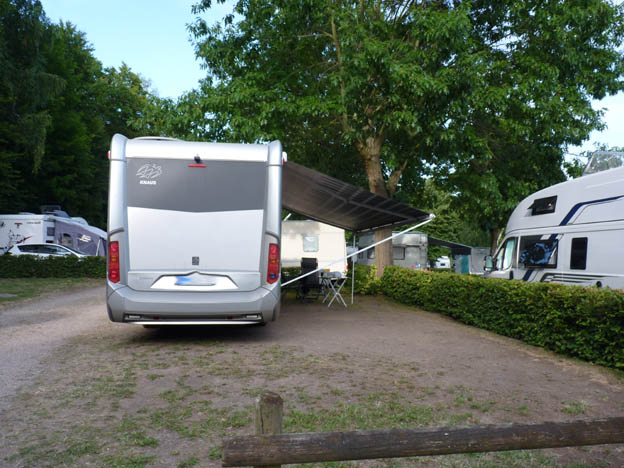 Där var vi också för två år sen. precis samma procedur som för er vid incheckningen. Vi hade en av platserna närmast vattnet och trappan ner till badplatsen som närmsta granne. Tur att det var en fin häck som skärmade av platsen…. Familjecampingar är inte för oss, men vi behövde tvätta, så då blev det så. Fin cykeltur bort till Maria Laach Klostret dock.