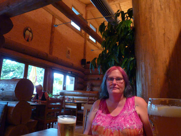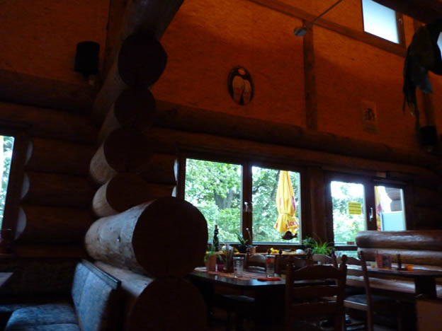 På kvällen provade vi campingens restaurang. Det var väldigt fina lokaler, med bjälkar både i tak, väggar och möbler.