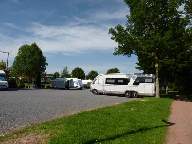 Man betalar i automat med mynt. Platserna är hyfsat stora och bra uppmärkta. Man står på hårt grus. Klockan 21.00 ca kom det en ställplatsvärd och kollade parkeringskvitto och delade ut kod till sopstationen. Även han pratade bara tyska. Sent på kvällen fanns det fortfarande platser kvar. 45 platser finns det enligt Bord Atlas.