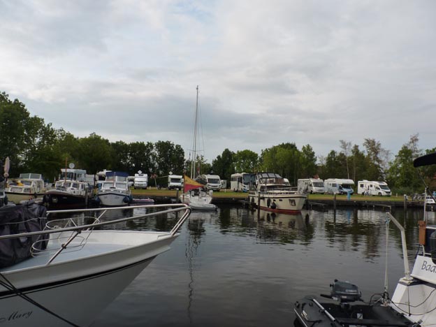Lagom när vi hade passerat Rotterdam la Kate av, vår GPS. Vi körde med hjälp av min älskade vägatlas och google maps i telefonen mot Giethoorn. Det var inga problem att hitta ställplatsen vi siktade på. Visa av tidigare erfarenheter i Holland blev vi positivt överraskade när vi fick plats. Det fanns till och med gott om platser kvar kl 14.00 när vi kom fram. Det brukar ofta antingen vara fullt eller vara för trånga platser för 9 meter bil i Holland.