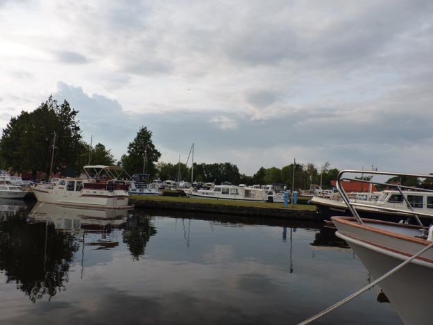 Mellan två skurar utforskade vi hamnen. Ställplatsen ligger som synes på bilden ovanför precis vid kajen.