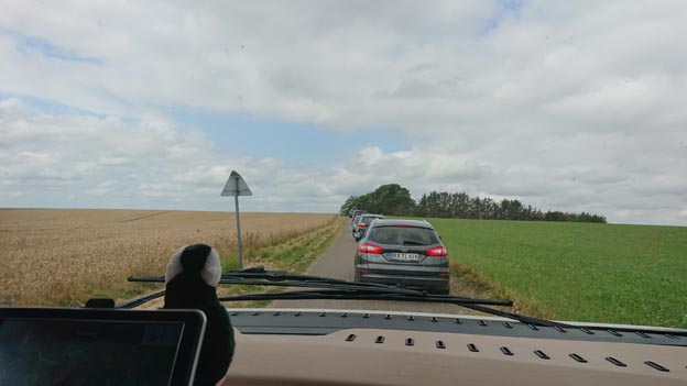 Vi blev omledda på en mycket smal väg på grund av en ordentlig trafikolycka.