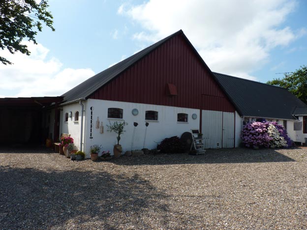 Vi ställde upp bilen, och tittade på trädgården och huset. Bryggeriet ligger i ladan.