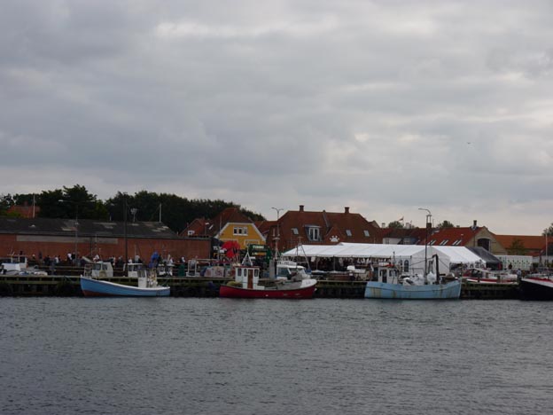 Det kom en hamnvärd och gav oss en massa broschyrer och information om Kerteminde. Hon berättade att det var hamnfestival i helgen, med gratis entré på söndagen, och förklarade vägen för oss. Den var på andra sidan av hamnen, så det tog ca 15 minuter att gå.