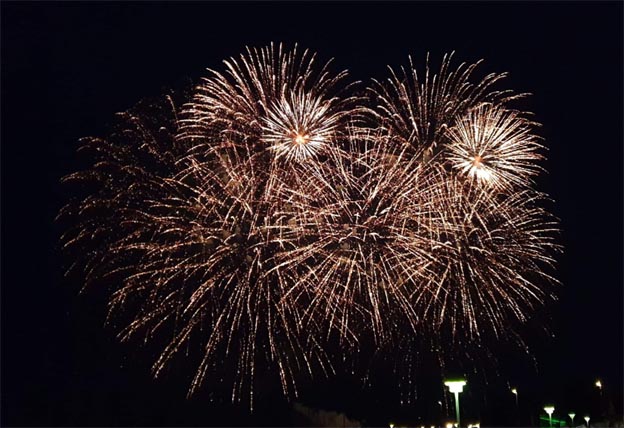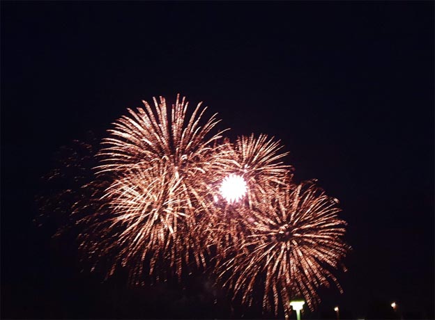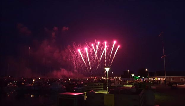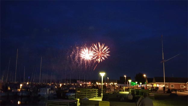 Klockan 22.30 avslutades hamnfesten med ett stort fyrverkeri. Då hade vi redan hunnit tillbaka till husbilen, så vi stod och tittade från andra sidan vattnet. Det var himla vackert och maffigt när allt reflekterades i vattnet.