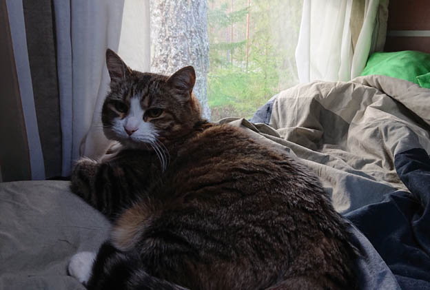 Olivia var så klart med. Hon ville mest ligga i sängen och ta det lugnt.