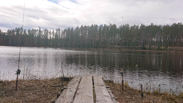 Vi for iväg till Krampen, ett område ca 4 mil hemifrån med flera fiskesjöar där det sätts i Regnbåge.