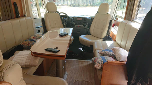 En sak som skiljde mycket från Knausen, förutom planlösningen, är att det är väldigt bekväma soffor. Det är en helt annan komfort i Rapidon. Utrymmet fram kändes enormt, det liknar det vi hade i Bürstnern, och det var det vi saknade och ville tillbaka till nu när vi bytte. Bordet går dessutom att snurra och vrida och vända på på en massa olika sätt.