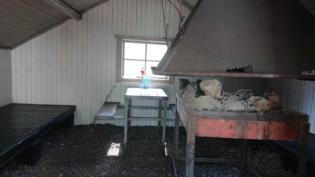 Det finns ett litet vindskydd på platsen också. Jag vet inte hur det ser ut inuti, för jag kunde inte öppna dörren. Handtaget var trasigt, och jag orkade inte lyfta dörren.