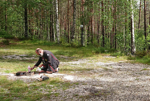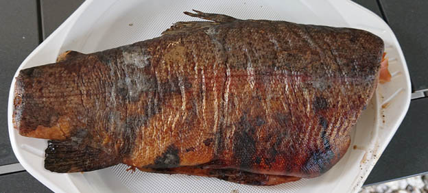Lelle fixar nationaldagslunch/snacks. Rökt regnbåge. Det var ett stort projekt, för vi hade inte använt vår rök på evigheter. Sist snyltade vi på fadrens rök. Att rengöra rök ingår inte i mina arbetsuppgifter, så jag satt och väntade och mös i solen, som hade vågat sig fram.