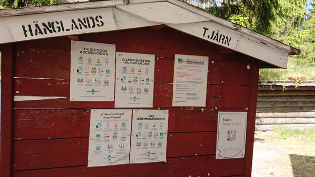 Vid tjärnen finns en tavla med information på flera olika språk. I sjön finns inplanterad regnbåge. Ett familjefiskekort kostade 300 kr för 24 timmar. Det gick att betala smidigt med swish. När kontrollanterna kom var det bara att visa med telefonen att man hade betalat. Ytterligare en sak som jag tycker om är att kontrollanterna hade både västar och id-kort som visade vilka de var. Det tycker jag är himla bra. Det känns mer seriöst än om det kommer en människa utan något som helst igenkänningstecken, som det har gjort vid vissa sjöar.