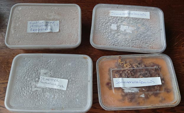 Efter ett tips från någon någonstans har vi gjort matlådor. Det har vi aldrig haft med oss förut, men det känns praktiskt nu när vi ska undvika folk och hålla oss i Sverige. I Tyskland kan man ju få en bra schnitzel och en pilsner för dryga hundralappen, men här hemma blir det dyrare att äta ute. En matlåda kan säkert funka himla bra om man kommer fram sent. Den är ju bara att tina upp medan man åker, och värma på när man kommer fram, och koka pasta eller vad man vill ha till. Enkelt, snabbt och smidigt. Annars brukar vi laga samma mat som vi lagar hemma i bilen.