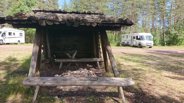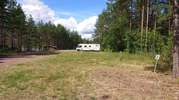 Klockan 22.00 på kvällen var vi 4 husbilar, så det fanns gott om plats kvar. Det var bara 11 grader ute, och en hel del knott och mygg.