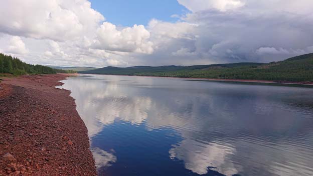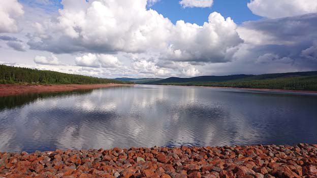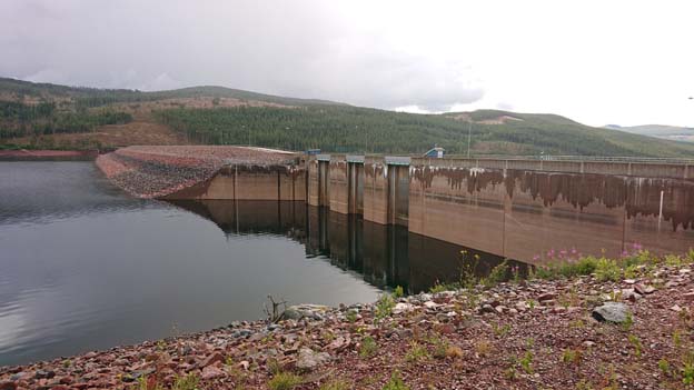 Det känns på något vis både vackert, kraftfullt och vemodigt på en gång när man ser på dammen. Det är väldigt vackra vyer ut över sjön, men samtidigt vet man att det fanns en fritt rinnande älv genom området för många år sedan, innan människan byggde om alltihop. El behöver vi ju, men det måste finnas bättre sätt att få el på om man vill, kan jag tycka.