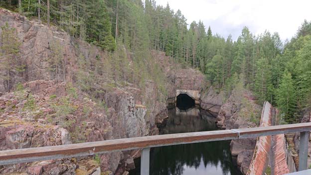 En liten bit längre bort kommer den före detta Österdalälven ut ur berget, och blir älv igen.