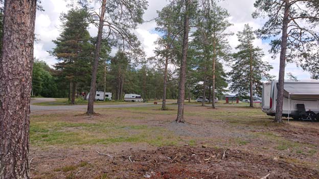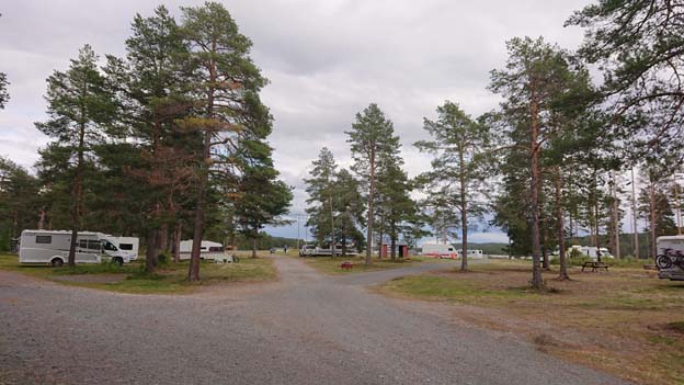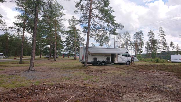 Vi for vidare till Näsets Camping i Idre. Det är en sådan plats som vi kommer tillbaka till med ojämna mellanrum. Vi trivs där helt enkelt. Värdparet är mycket trevliga, och det finns träd och en sjö. Vi fick en bra plats som var lätt att både komma in och ut från, och där marken var hård. Det hade regnat en del, så vi ville inte köra fast. Campingvärden följer med och visar olika platser.