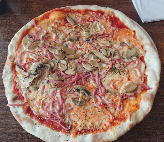 Lelle åt en väldigt stor plankstek, som dessutom var god, och jag åt en god pizza.