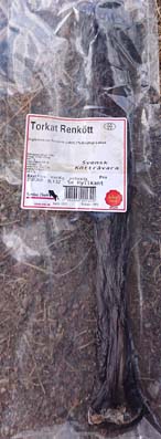 Till efterrätt åt vi torkat renkött som vi hittade i mataffären. Underbart gott.