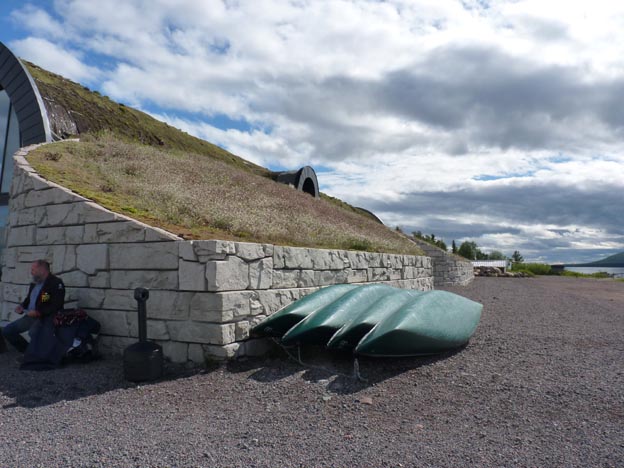 Det man kan se på sommaren kallas Icehotel 365. Det finns i den här byggnaden. Hotellet grundades 1989, och är skapat helt och hållet av is och snö från Torne älv. Sedan 2016 kan man övernatta i rummen med iskonst året runt. Den här sommaren har man inte kunnat övernatta mellan 14 april och 31 juli, pga Corona. Det var egentligen bra för oss, för alla rummen var öppna när vi var där. Annars får man bara titta in i obokade rum.