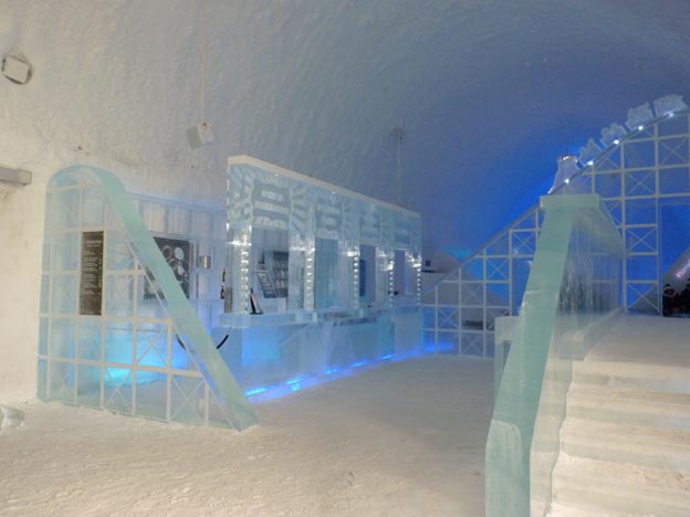 Det finns en bar där man kan slå sig ner och njuta av en drink ur ett glas gjort av is.