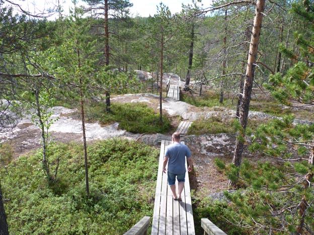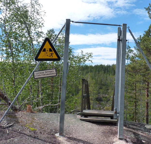 När man närmar sig själva älvfåran och utsiktsplatsen möts man av varningsskyltar och stängsel. Det ska vara riskfritt att gå där om man håller sig till träspångarna.