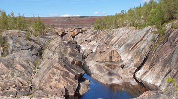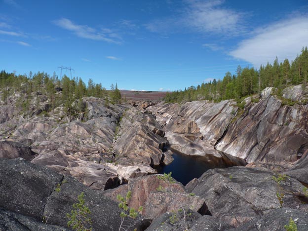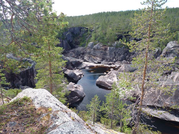 Att Harsprånget är en del av Luleälven kan vara svårt att se här. Det som är intressant att se är med vilken kraft vattnet har putsat stenarna en gång i tiden. Det skulle ha varit en väldigt maffig fors att se på om den hade funnits kvar.