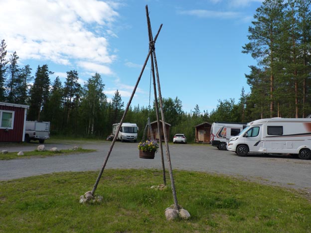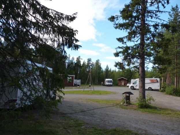 Eftersom vi blev ordentligt svettiga av att gå i trapporna vid Harsprångsfallet, bestämde vi oss för att ta in på camping för att få en rejäl dusch. Valet föll på Skabram Camping & stugby utanför Jokkmokk.